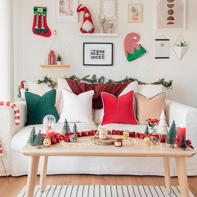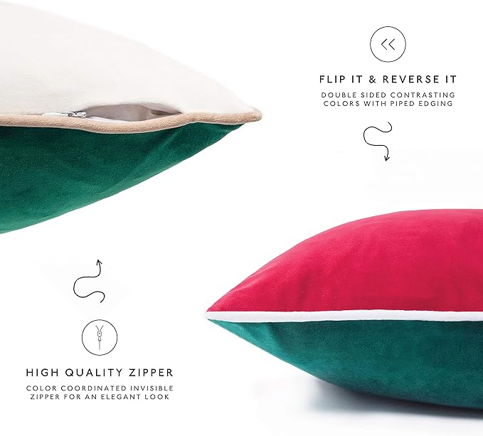 - SET OF 4: Includes 1 red velvet pillow + 1 green velvet pillow + 1 beige velvet pillow + 1 white velvet pillow